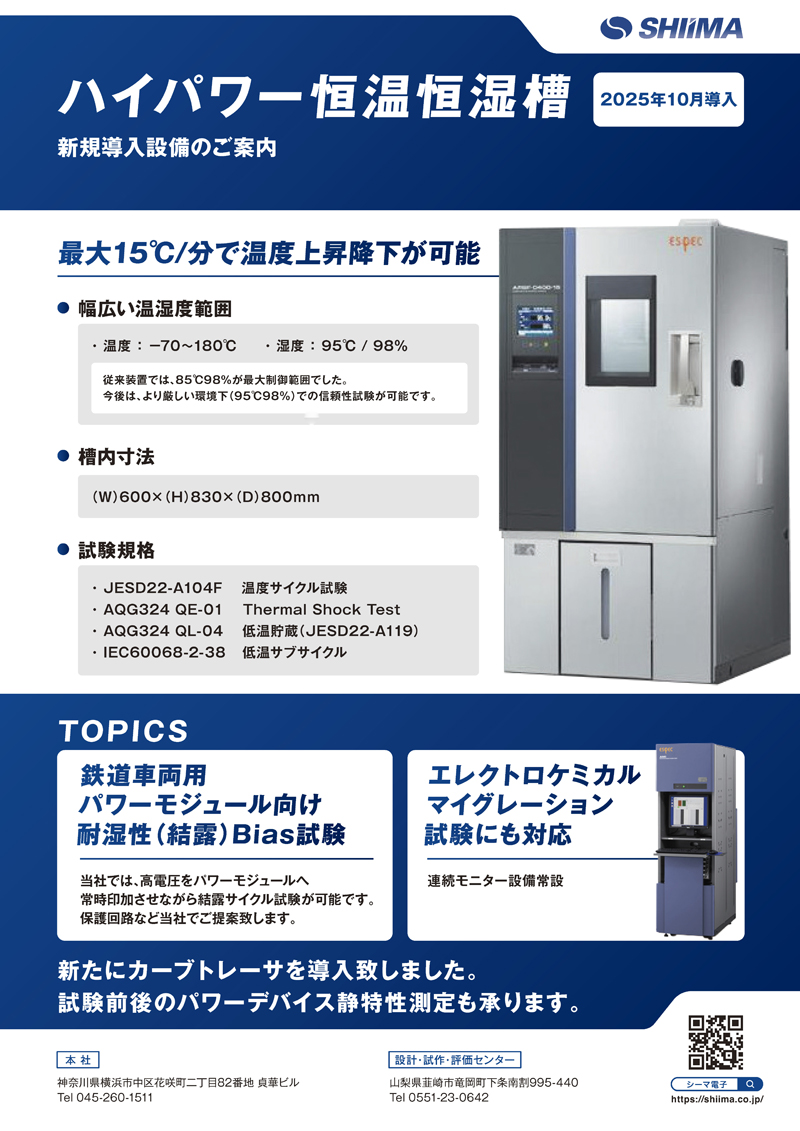 海外規格試験で要求される3℃/分~10℃/分の温度変化率に対応した恒温恒湿槽を導入致しました。